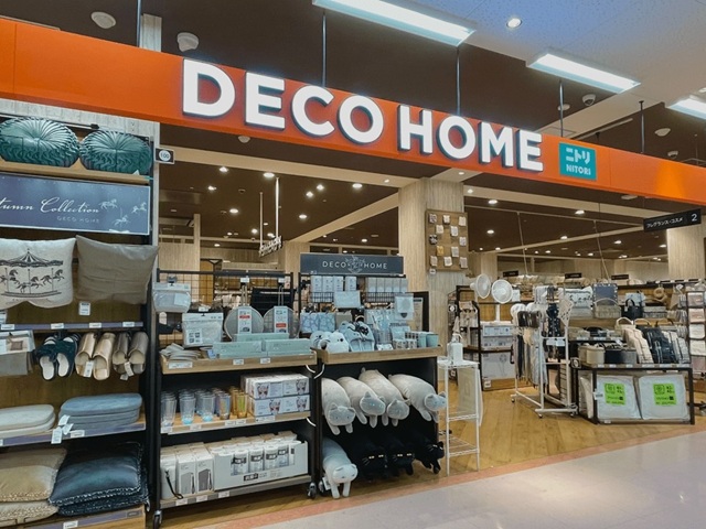 ホームページはこちら 営業時間:10:00~21:00 電話 0120-014-210 ニトリから生まれた インテリア雑貨のお店。 デコホームは普段使いの日用品からお部屋のアクセントになるようなアイテムまでを 女性目線でセレクトし、品質やデザインはもちろん、お手頃な価格を実現する インテリア雑貨のお店です。 毎日の料理が楽しくなる キッチン用品や食器類、 気分転換におすすめの フレグランスやクッション、寝具や季節を彩る商品など、様々なアイテムを揃えています。 |